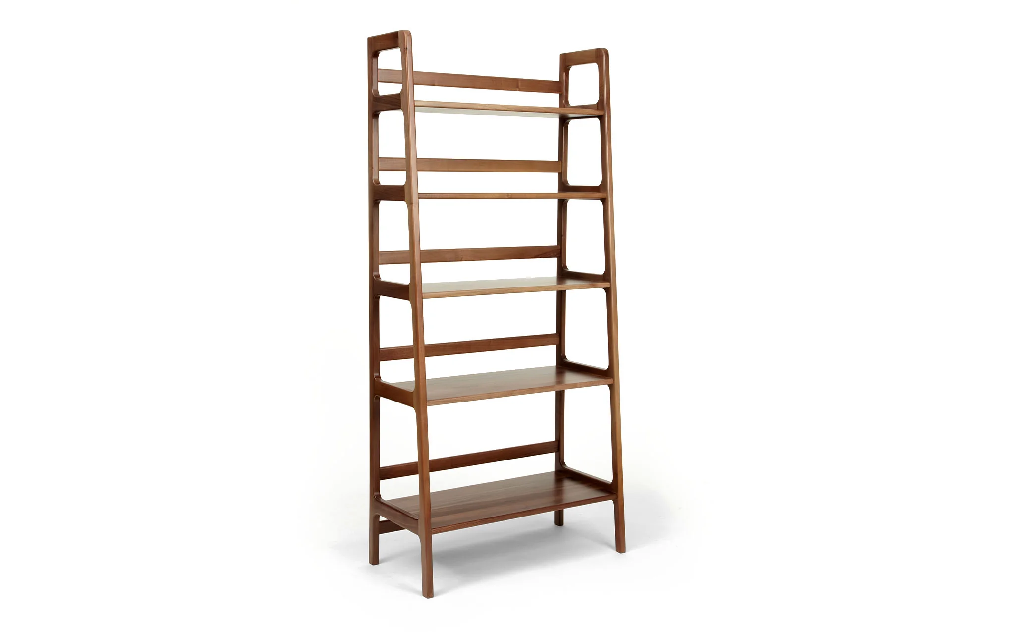 The tall free standing shelving unit with five shelves by Kay + Stemmer is part of the Agnes collection. Featuring a notably softened looking design that retains it’s aesthetic beauty from whichever angle you look at it.///Description
