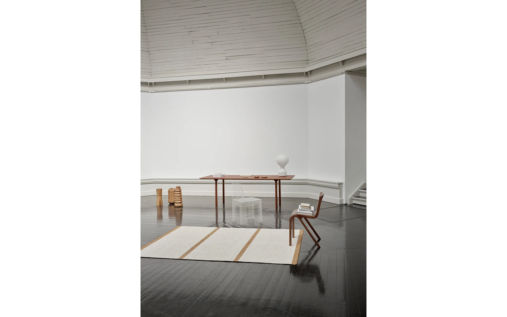 Rapallo’s beautiful simplicity is the epitome of Scandinavian design – combining spaced symmetrical lines and neutral tones to create a cohesive expression that brings harmony to its surroundings. Crafted from a durable blend of wool and linen, the striped design is reversible, offering greater flexibility and a longer lifetime.///Description