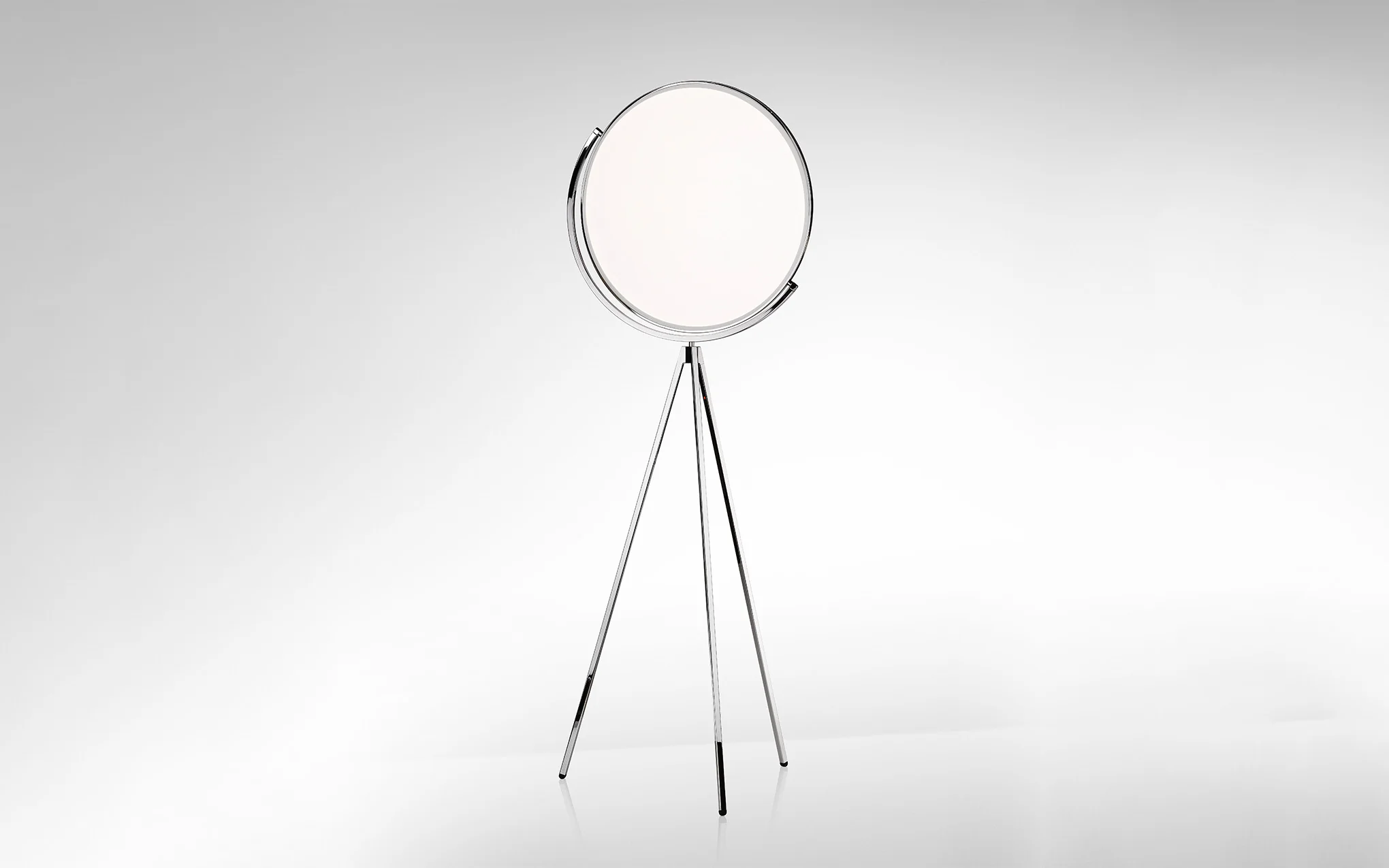 The Superloon floor lamp by Jasper Morrison features a stunning flat disc LED sat upon tripod legs. The light head is rotatable to 360 degrees and with its adjustable light intensity and temperature, the Superloon works as both ambient lighting and a focused reading light.///Description